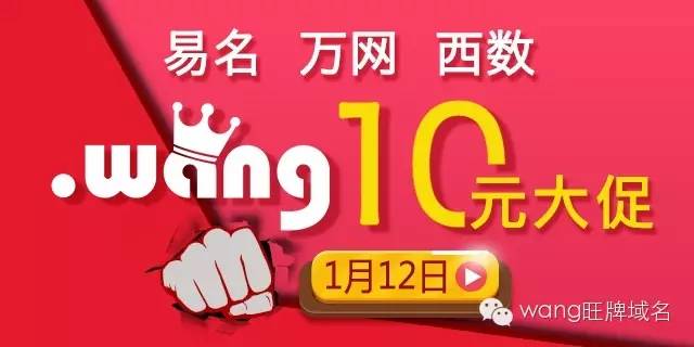 1月12日万网、易名、西部数码三家域名交易平台联合推出.wang域名10元促销活动。 今日三家交易平台数据统计显示,.wang1月12日注册了27115个,再创高峰,.wang取得2016年开门红!