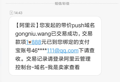 截图证实,该域名是在阿里云带价PUSH完成交易的,买家的手机号末尾是“888”,因此交易价格末尾也是“888”。看来寓意“发发发”的“888”颇受中国人的青睐!