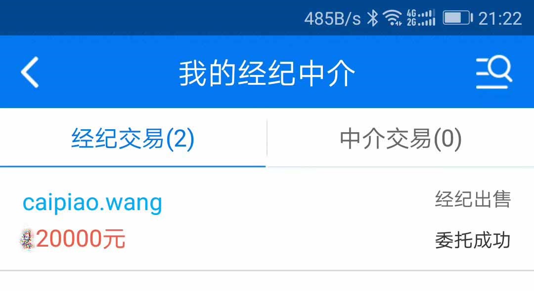 2018年6月20日,米友“鸟菜家政”报来喜讯,双拼域名caipiao.wang以 X2 万元成交了,这笔交易是通过易名中国经纪人“叮当”促成的。